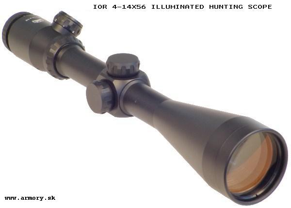 Description of reticle type: Distance between 2 horizontal big line is 1m/100m. The big line has 0.5 MIL. Distance between 2 big lines is 1 MIL. Range finder is for 24 inches at 200, 400, 600, 800m. The point diameter is 1 MOA green light up. | Magnification: | 4 - 14x | | Objective-Lens Diameter: | 56 mm | | Tube diameter: | 30 mm | | Diopter adjustment: | +/-4 dpt | | Click adjustment: | 1/2 MOA | | Reticle adjustment range: | 82 MOA | | Reticle Type: | 4AD | | Illuminated reticle: | 4AD | | The batterie type: | Lithium 3V CR 2032 | | Lenght: | 343 mm | | Weight: | 980 g | | Optical components (glass): | Superior optical glass by SCHOTT (Germany) | | Antireflex treatment: | T3 multilayer coating (Carl Zeiss) | | Working temperature: | -30 to +50 | | Scope body material: | 6061-T6 alloy housing | | Surface coating: | 2 - layers matt black | |