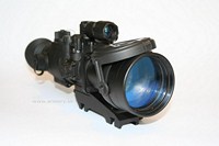 Remote Control Duplicates the “on/off” function of the device and IR illuminator and quick start-up of the riflescope and IR illuminator (the device works only when the button is kept pressed). This is very convenient in order to find the appropriate position, take aim and shoot. Objective Lens The objective lens has a quantified focusing mechanism with fixation on 100m range. This allows you to get a sharp image at any distances within the working range. Power Supply The riflescope can be powered with one AA (1.5V) or CR123 (3V) battery. The power supply unit with a voltage stabilization system ensures proper work of all systems of the riflescope even when the battery is nearly empty. Objective Lens Cap The cap is fastened on a rigid plastic ring dipped into the groove in the objective of the covering. This secures the cap from being lost. There is no need to remove the cap when viewing or shooting - you can simply slide it back and fix anywhere on the objective housing. IR Illuminator The riflescope is equipped with a powerful IR illuminator with focused light spot, from concentrated to diffused one. Instant Start The fast start-up of the riflescope and IR is very convenient when constant observation is not conducted in order to get familiarized with the situation. In this case the riflescope works only when the button is kept pressed.
